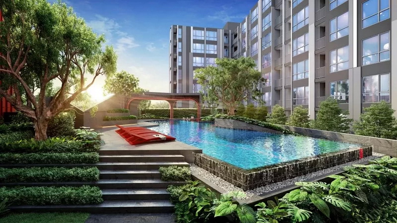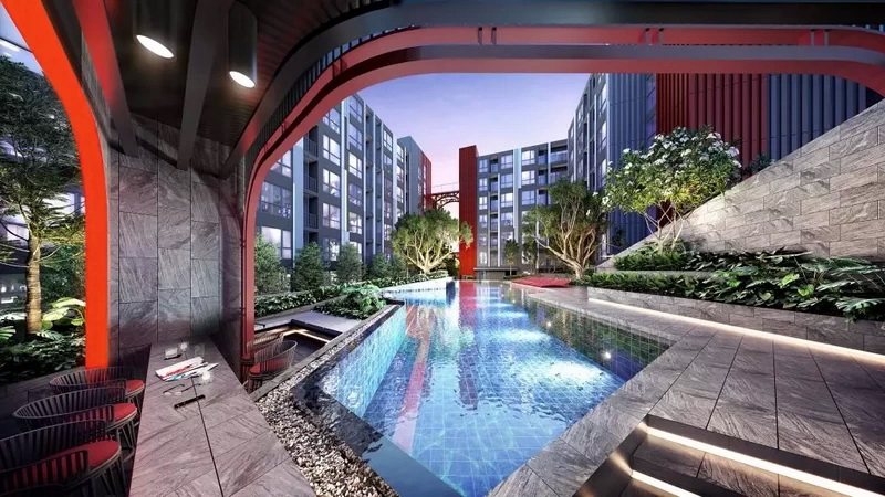 • MORE FACILITY ส่วนกลาง 8 ชั้น (ทุกชั้น) 2 อาคาร พร้อมสระว่ายน้ำ สวนส่วนกลาง และ Fitness